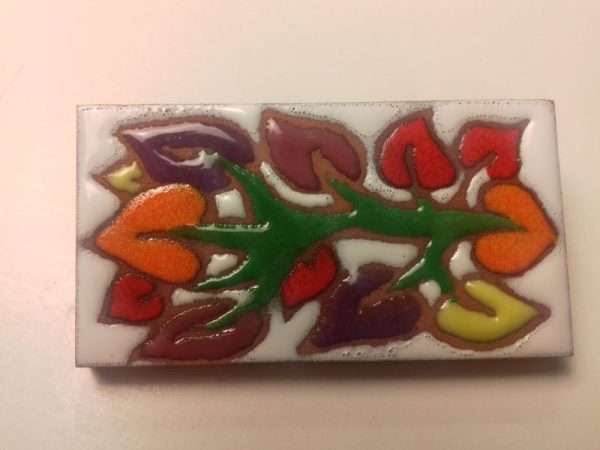 Podemos hacerla mediante dos procedimientos, con lápiz de grafito o bien con pigmento cerámico. Rellenar de esmalte coloreado los espacios del dibujo y el resultado final una vez cocido.